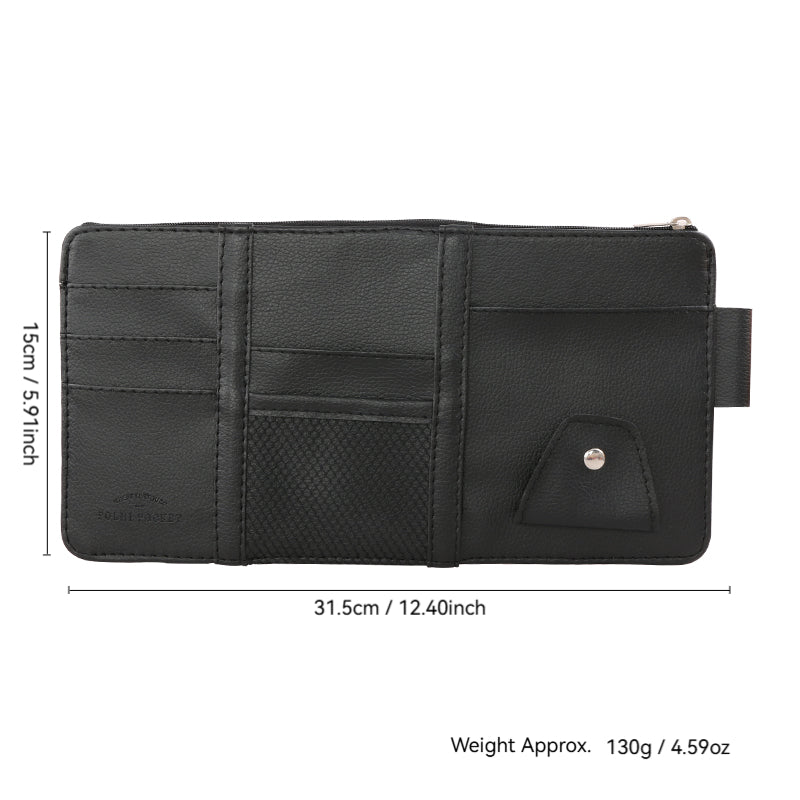 الميزات الرئيسية: صغير الحجم ومناسب لجميع السيارات: يبلغ قياس هذا المنظم حوالي 12.4 × 6 بوصات (31.5 × 15.2 سم)، وهو مصمم ليتناسب مع معظم واقيات الشمس للسيارات وسيارات الدفع الرباعي والشاحنات دون حجب الرؤية.