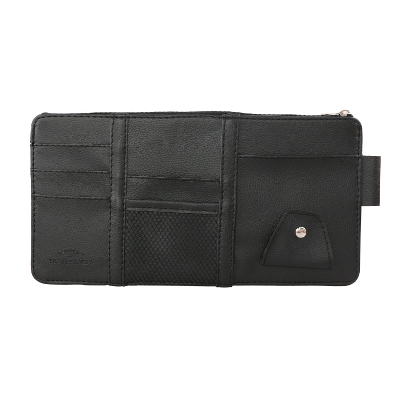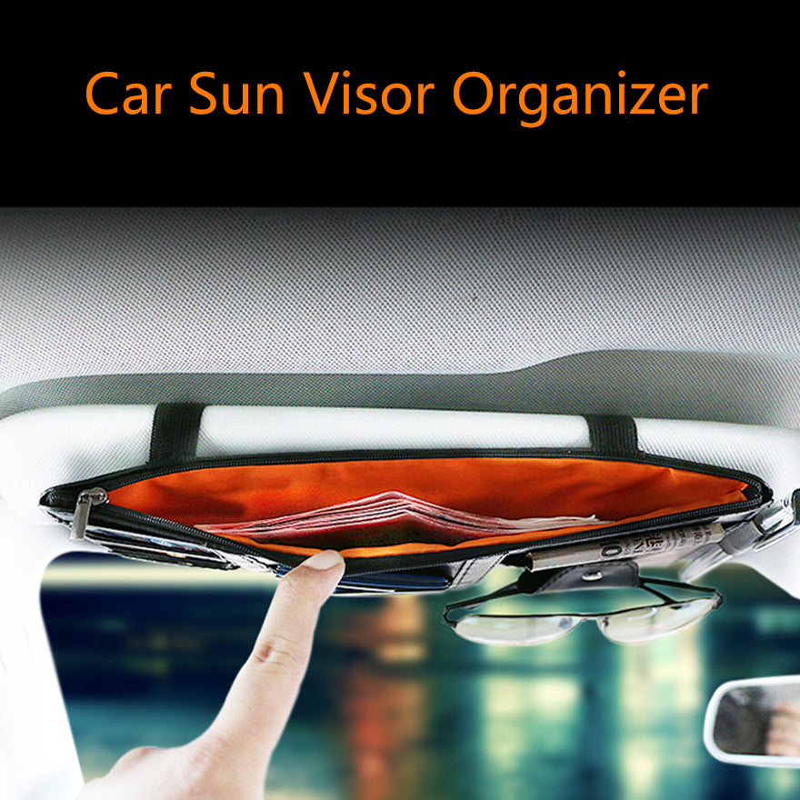 منظم واقي الشمس للسيارة - حامل نظارات شمسية ومستندات من الجلد الصناعي مع جيوب متعددة