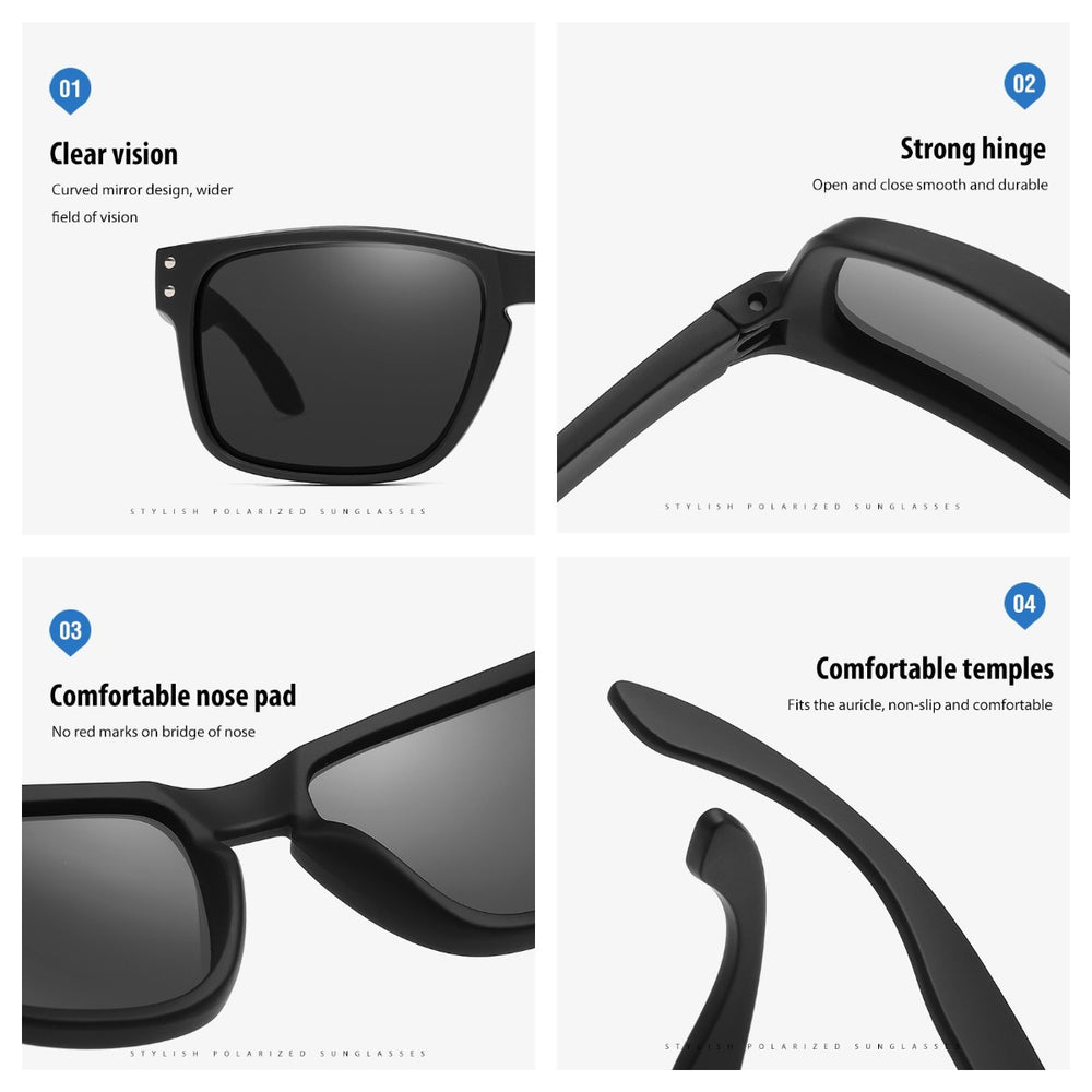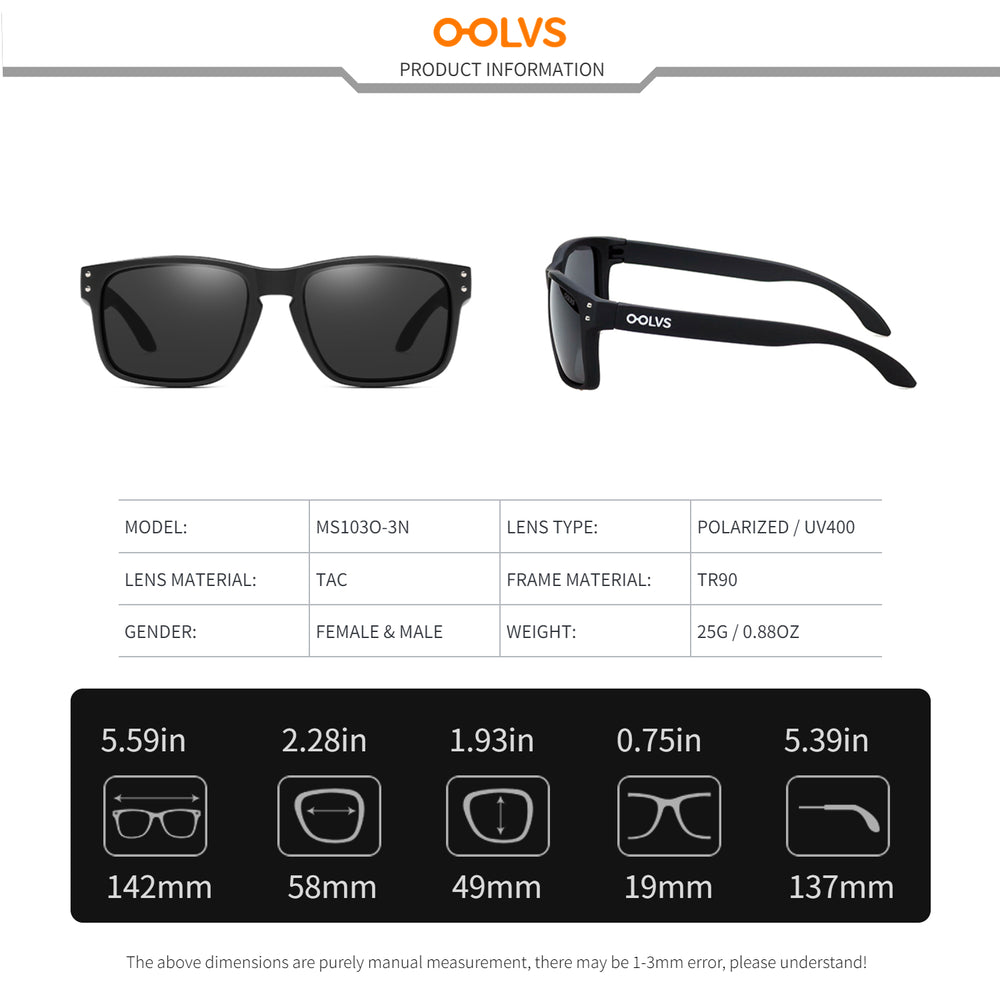 OOLVS Men Sports Polarized Sunglasses, Driving Fishing Cycling Square Sun Glasses, Protective Glasses, Classic Women Spectacles Fashion Frame Gafas De Sol