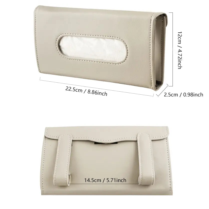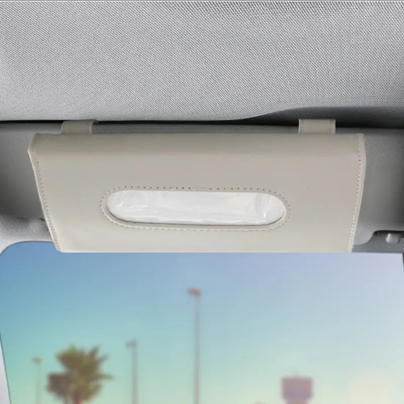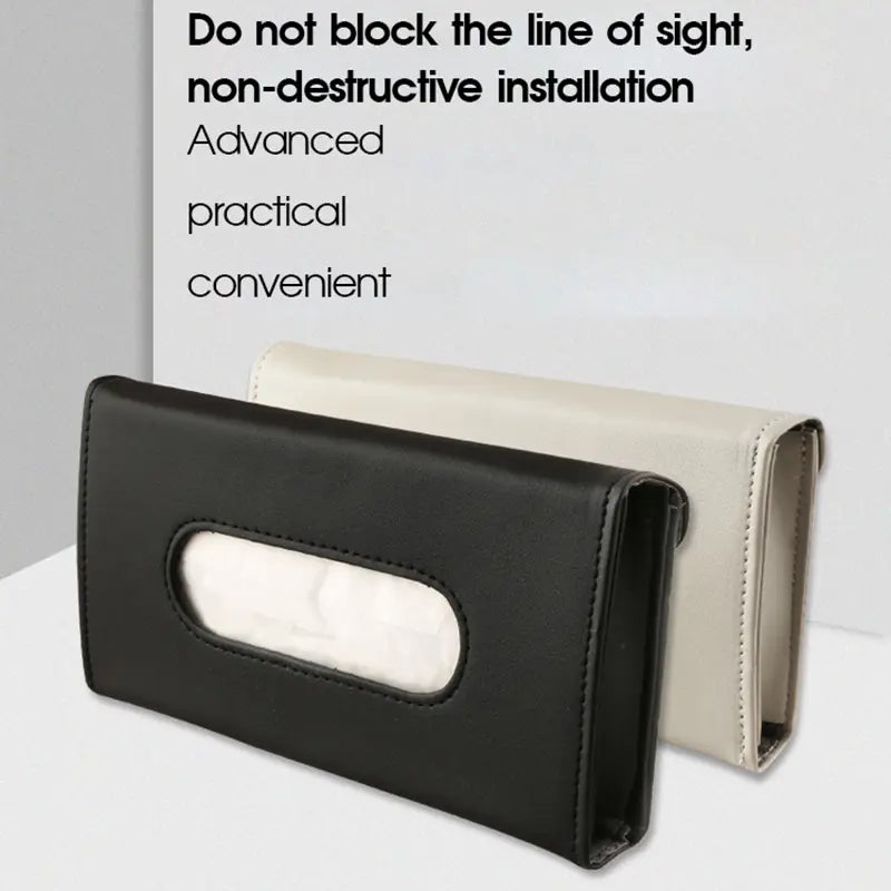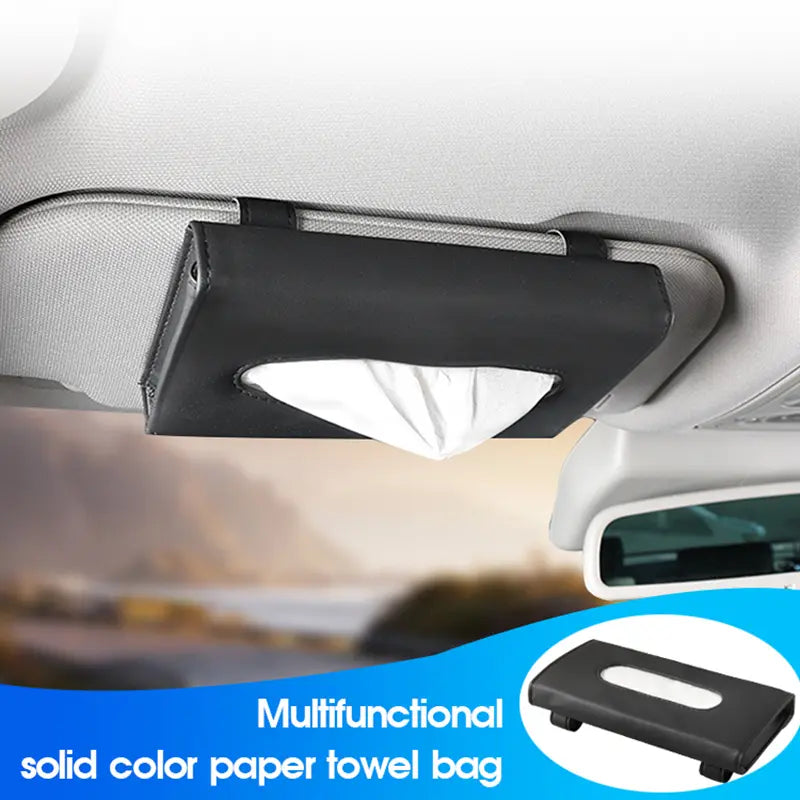 Premium PU Leather Clip-On Visor Tissue Holder (with Refill)