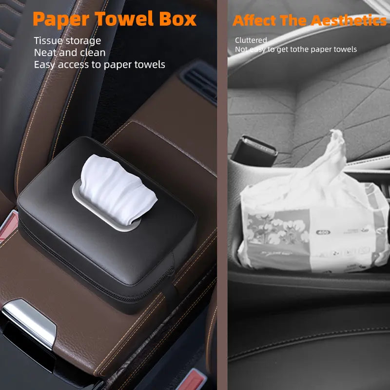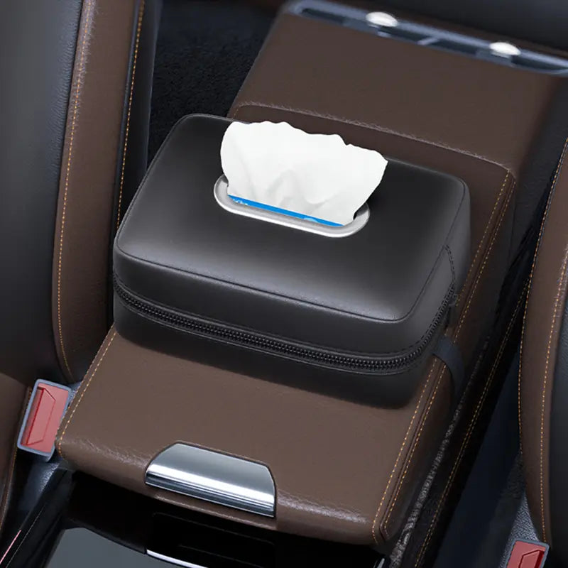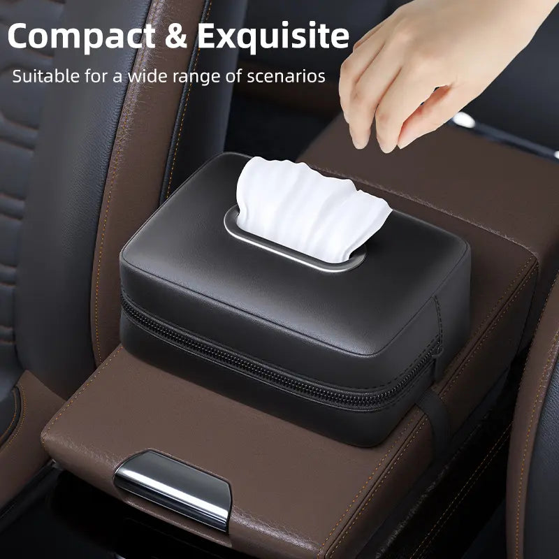 Luxury PU Leather Car Tissue Holder – Foldable & Spacious (17.5 × 13 × 7 cm / 6.9 × 5.1 × 2.8 in)
