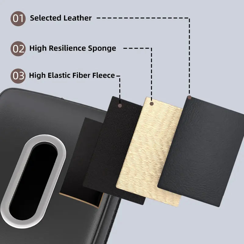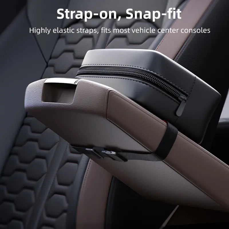 Built with three sturdy layers—PU leather exterior, cushioning sponge core, and inner lining—for durability and protection. Equipped with an adjustable elastic strap and buckle to keep it firmly in place on headrests or center consoles, even during bumpy driving.
