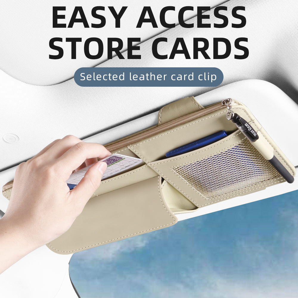 Organizer Pelindung Matahari Mobil – Tempat Kacamata & Kartu untuk Interior Mobil, Truk & SUV