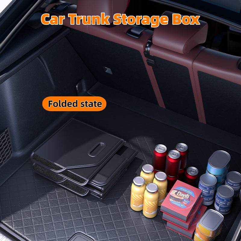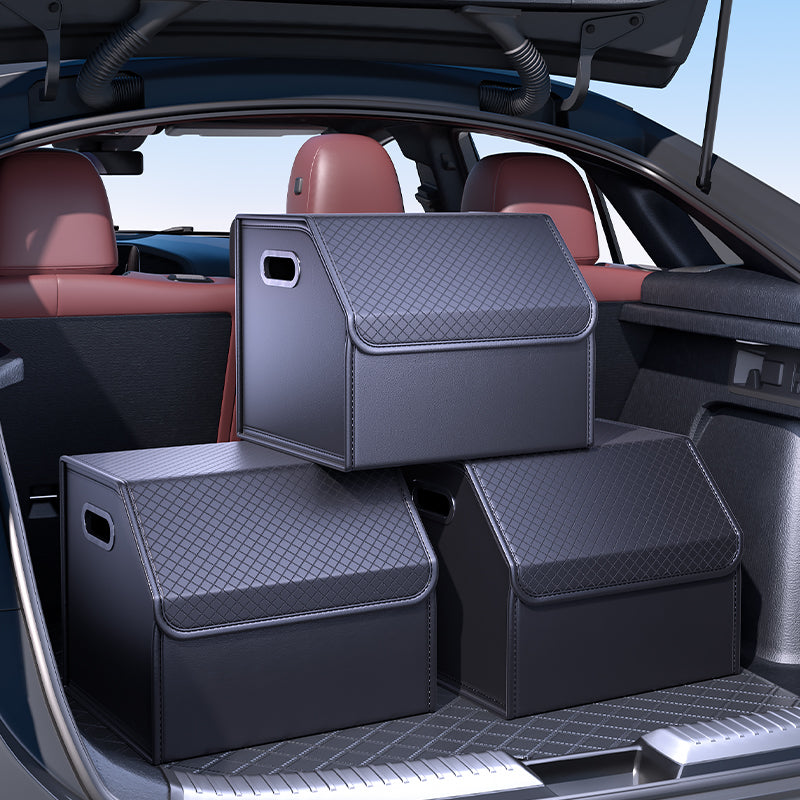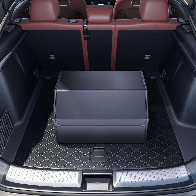 PU Leather Car Trunk Organizer – Foldable & Durable Cargo Storage Box with Lid