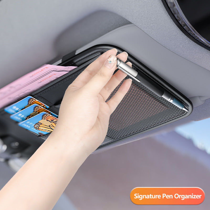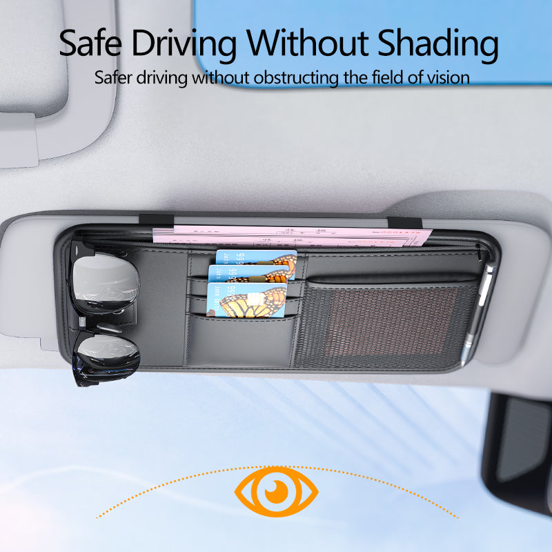 🌟 Why Choose This Visor Organizer? ✅ Clutter-Free Driving: Eliminate loose items in your car for a cleaner, safer ride. ✅ Durable Construction: Weather-resistant PU leather withstands daily wear. ✅ Adaptable Fit: Works with most vehicles – no modifications needed. ✅ Smart Storage: Multiple pockets for organizing cards, cords, and more.
