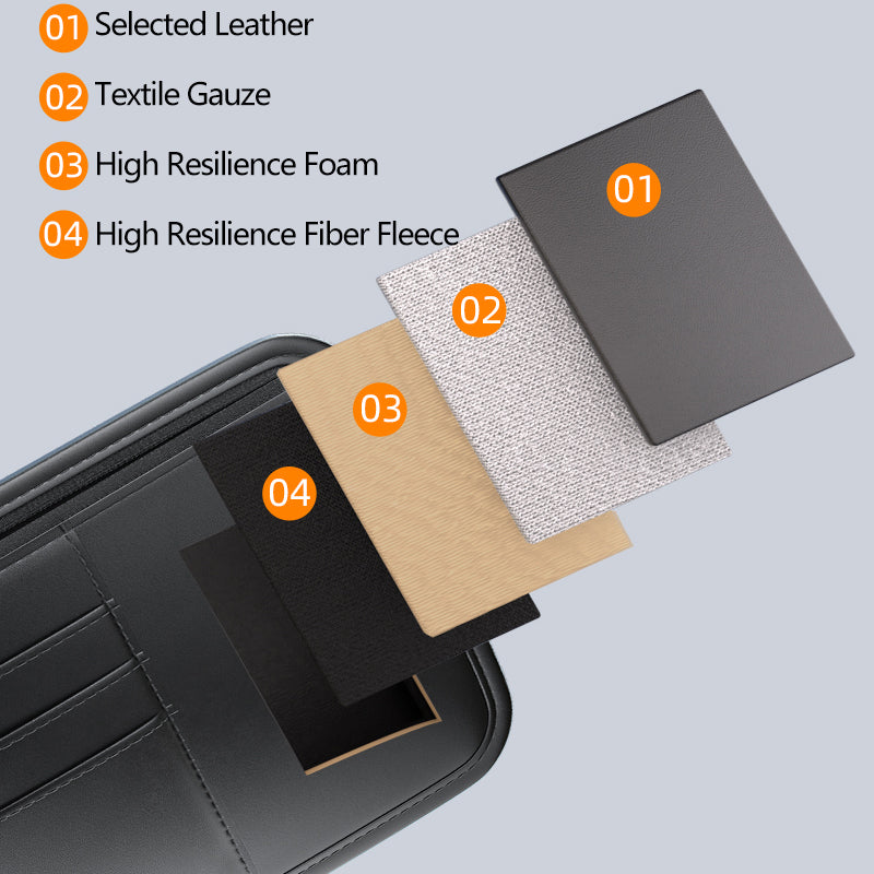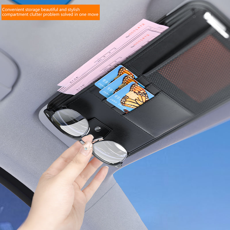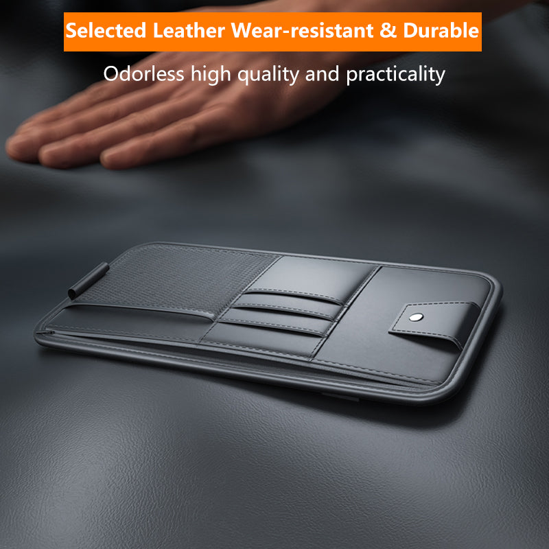 Elegant & Durable Design: Crafted from premium PU leather, this sun visor organizer boasts a refined texture that seamlessly complements your vehicle's interior. The sturdy construction ensures long-lasting use.